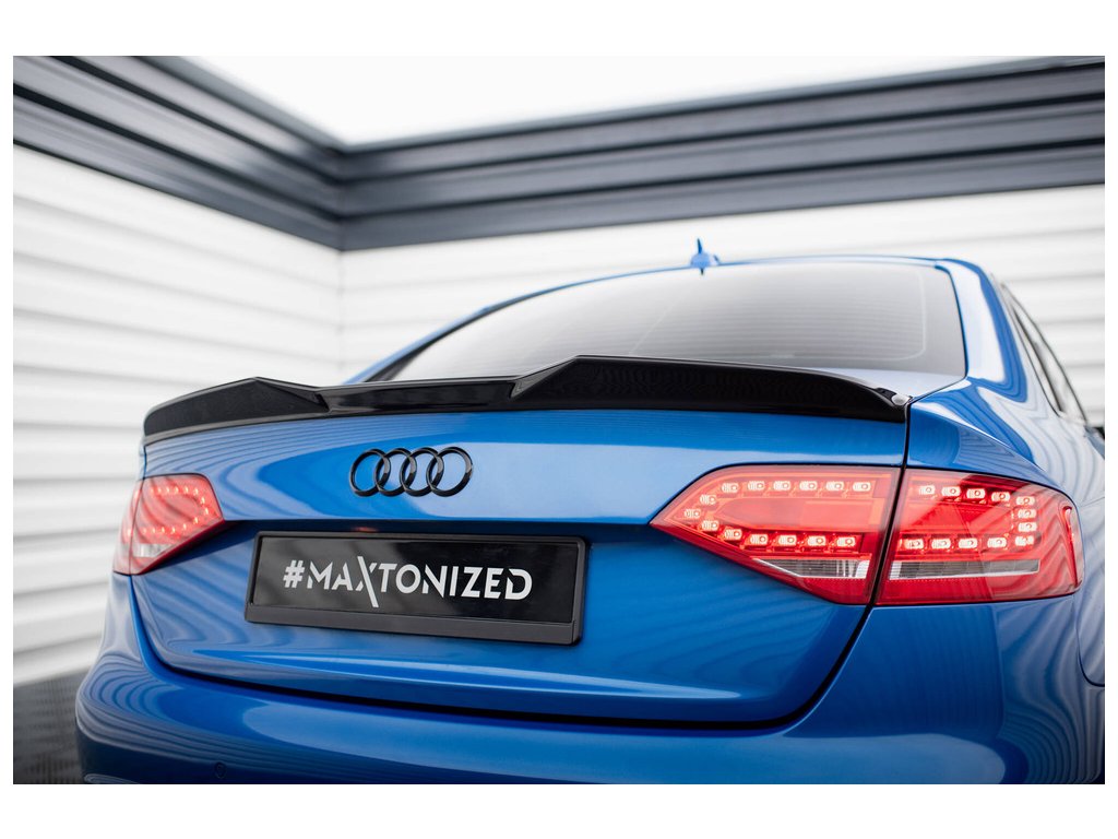 Maxton Design prodloužení spoileru 3d pro vozidlo Audi S4 B8 . Povrchová úprava spoileru černý lesklý plast ABS.