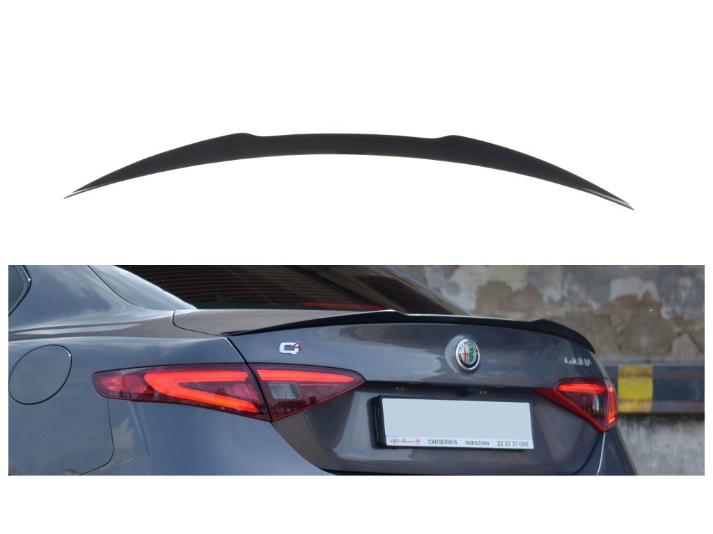 Maxton Design prodloužení spoileru pro vozidlo Alfa Romeo Giulia Veloce . Povrchová úprava spoileru carbon-Look.