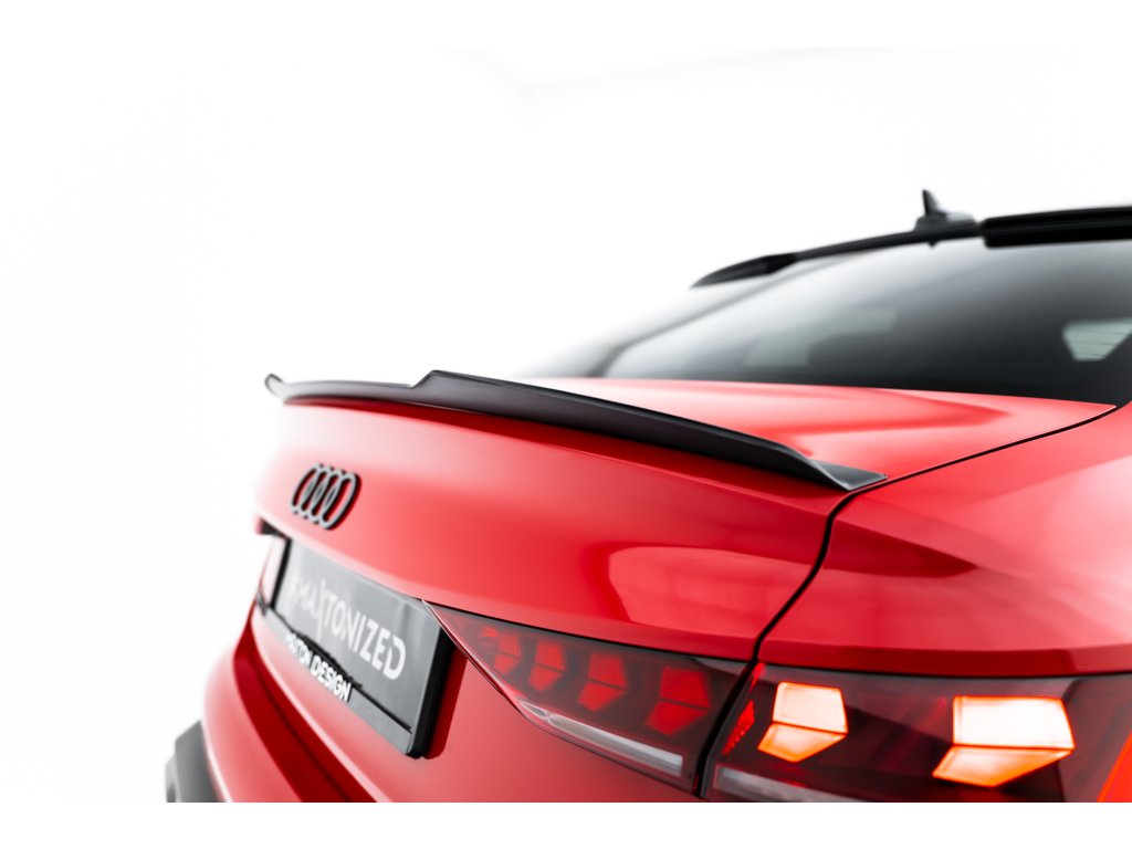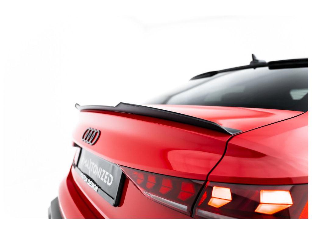 Maxton Design prodloužení spoileru pro vozidlo Audi A3 8Y . Povrchová úprava spoileru černý lesklý plast ABS.