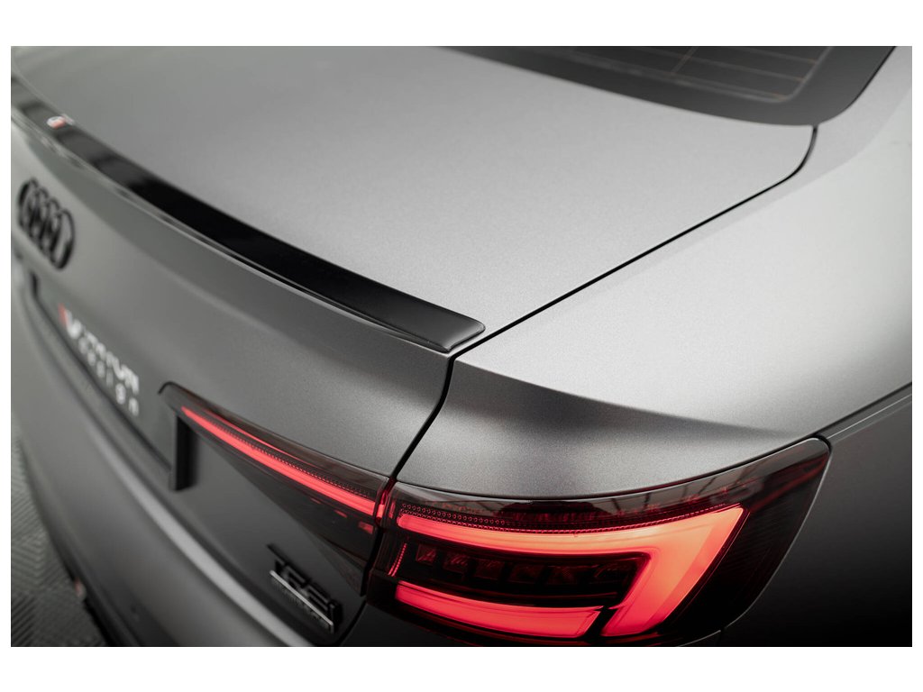 Prodloužení spoileru Audi A4 S-Line B9 Sedan, povrchová úprava černý lesklý plast ABS.