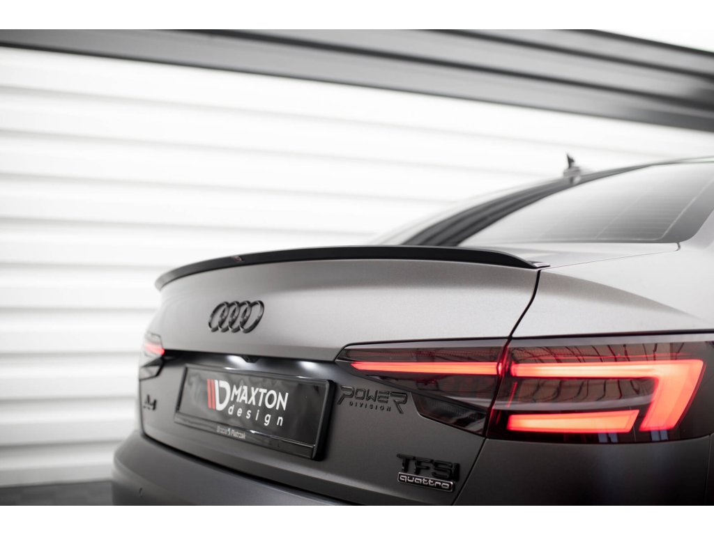 Maxton Design prodloužení spoileru pro Audi A4 B9, černý lesklý plast ABS, sedan