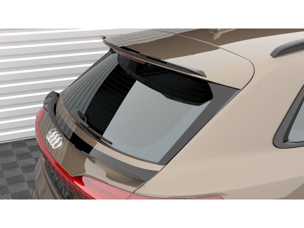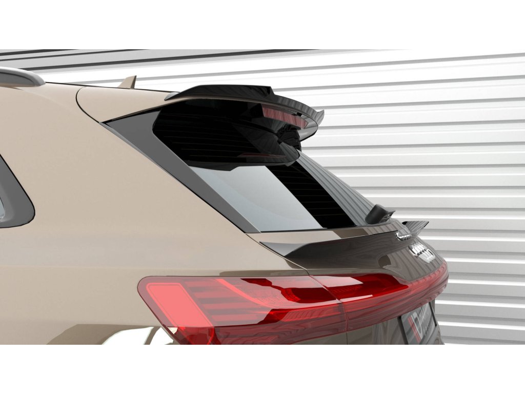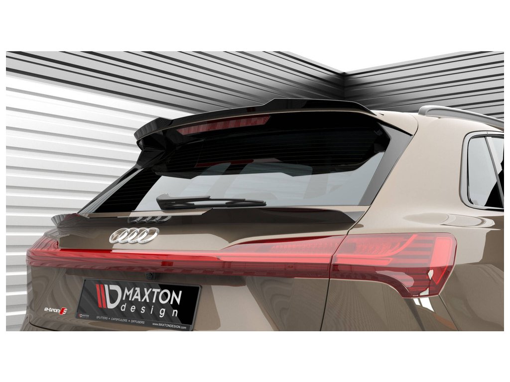 Maxton Design prodloužení spoileru pro vozidlo Audi E-Tron S-Line . Povrchová úprava spoileru černý lesklý plast ABS.