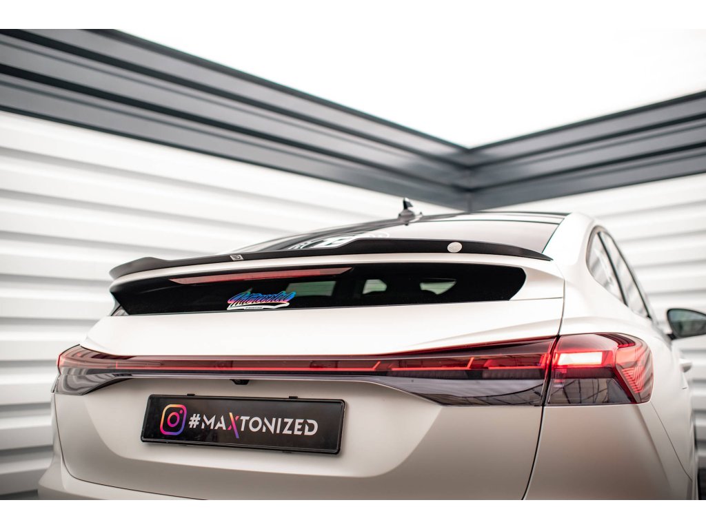 Maxton Design prodloužení spoileru pro vozidlo Audi Q4 e-tron Mk1 Sportback . Povrchová úprava spoileru carbon-Look.