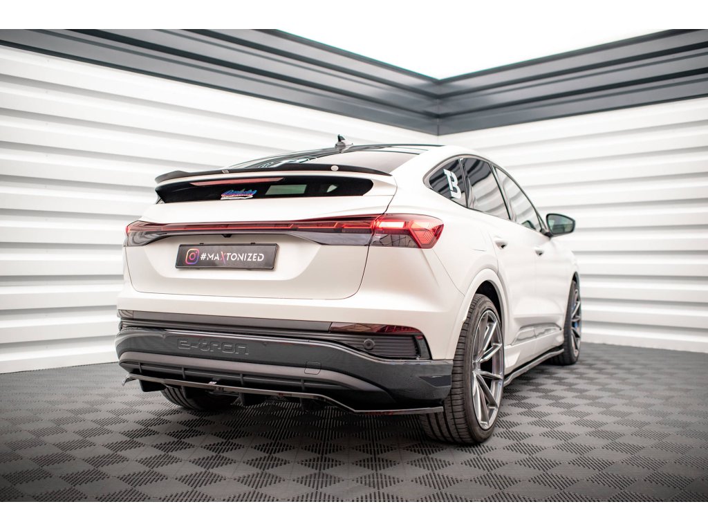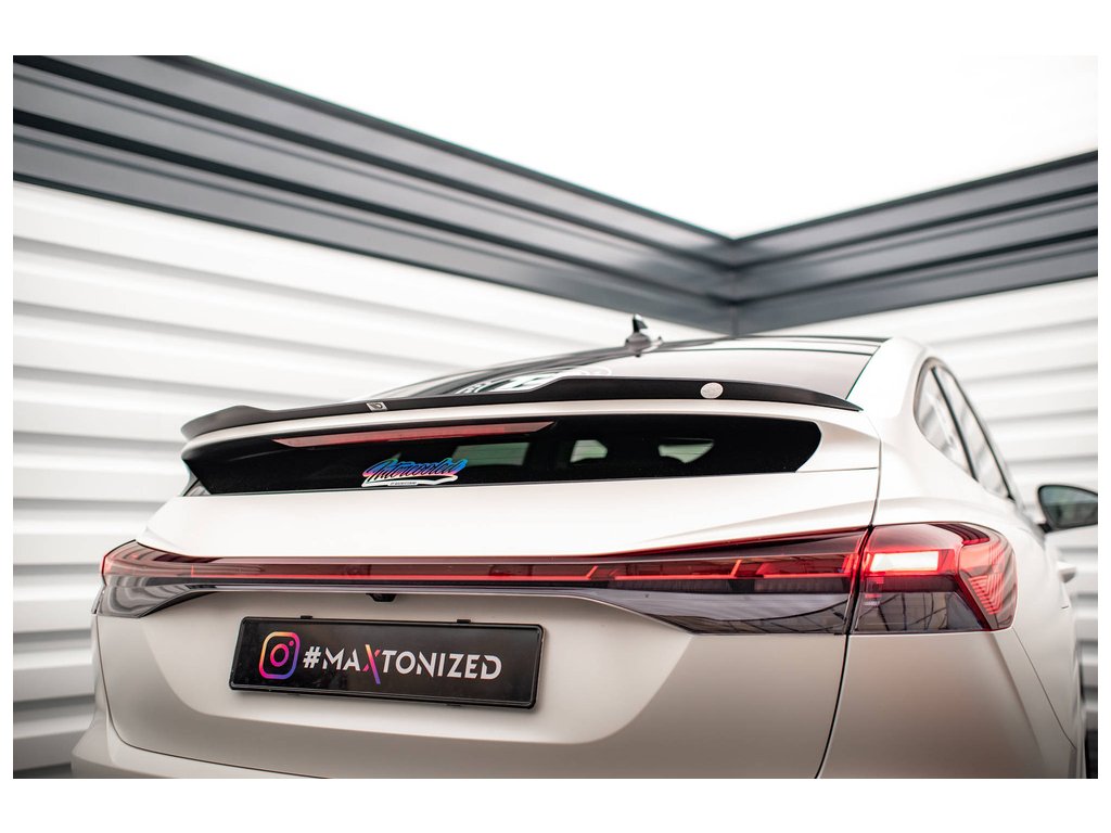 Maxton Design prodloužení spoileru pro vozidlo Audi Q4 e-tron Mk1 Sportback . Povrchová úprava spoileru černý lesklý plast ABS.