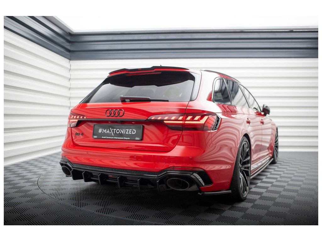 Maxton Design prodloužení spoileru pro Audi RS4 B9, B9 FL, černý lesklý plast ABS