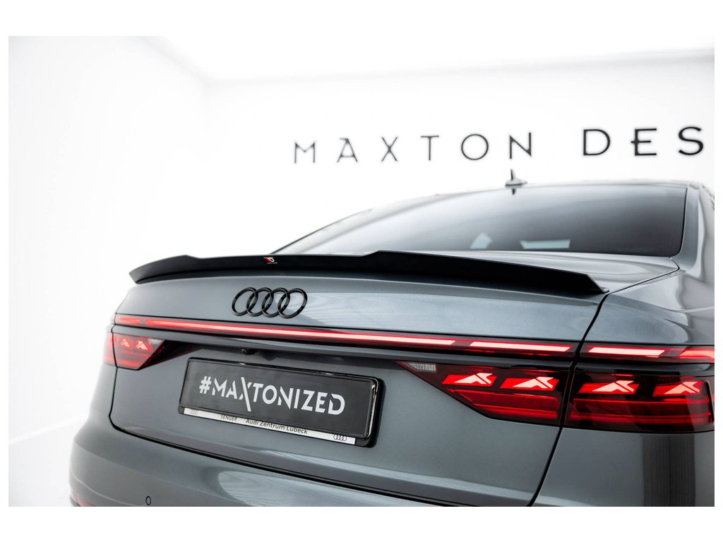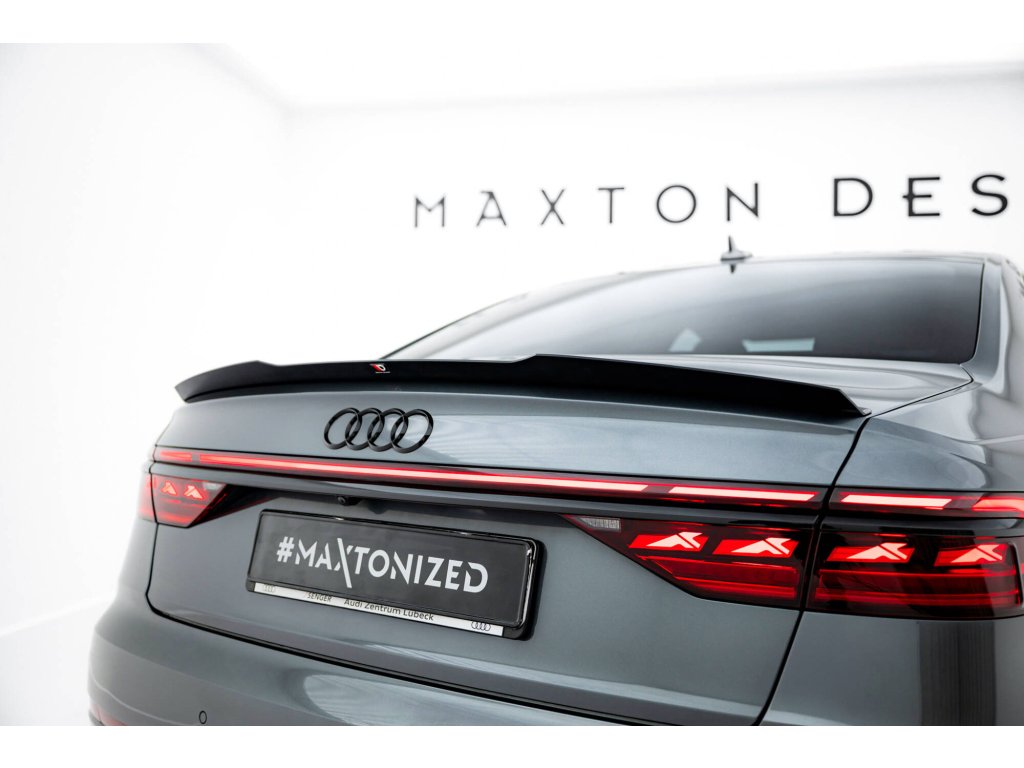 Maxton Design prodloužení spoileru pro vozidlo Audi S8 D5 . Povrchová úprava spoileru černý lesklý plast ABS.