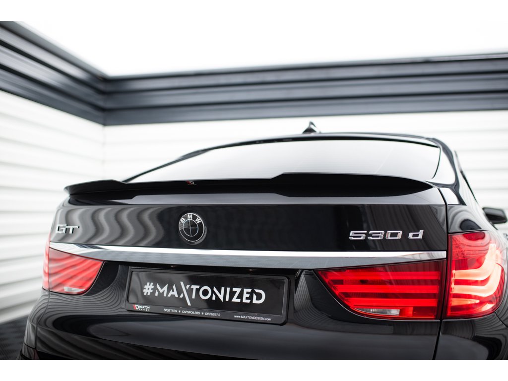 Maxton Design prodloužení spoileru pro vozidlo BMW řada 5 GT . Povrchová úprava spoileru černý lesklý plast ABS.