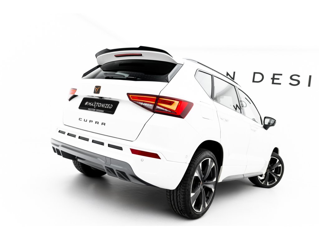 Maxton Design prodloužení spoileru pro vozidlo Cupra Ateca . Povrchová úprava spoileru černý lesklý plast ABS.