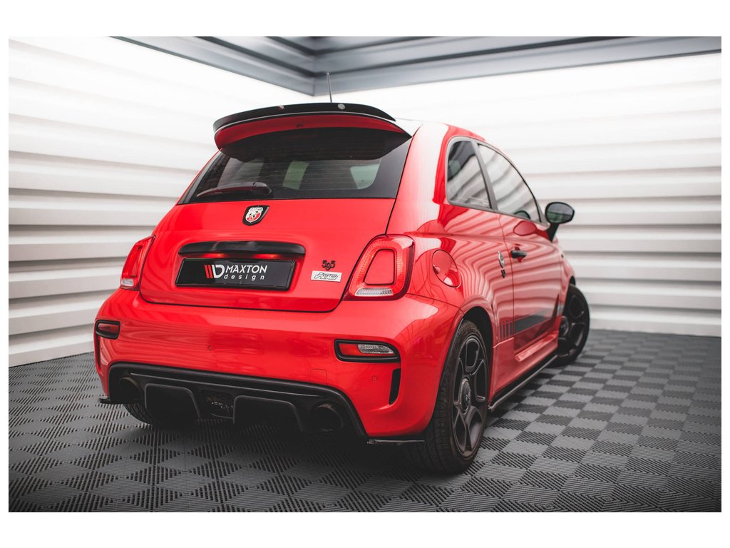 Maxton Design prodloužení spoileru pro vozidlo Fiat 500/595/695 Abarth Mk1 FL . Povrchová úprava spoileru černý lesklý plast ABS.