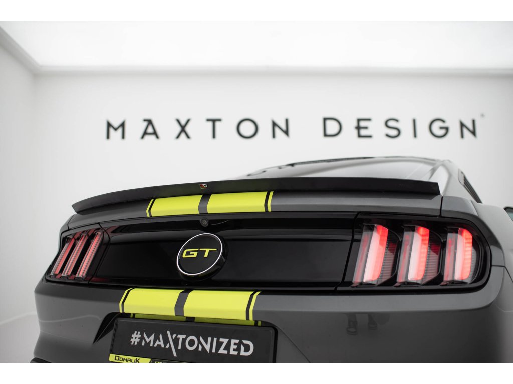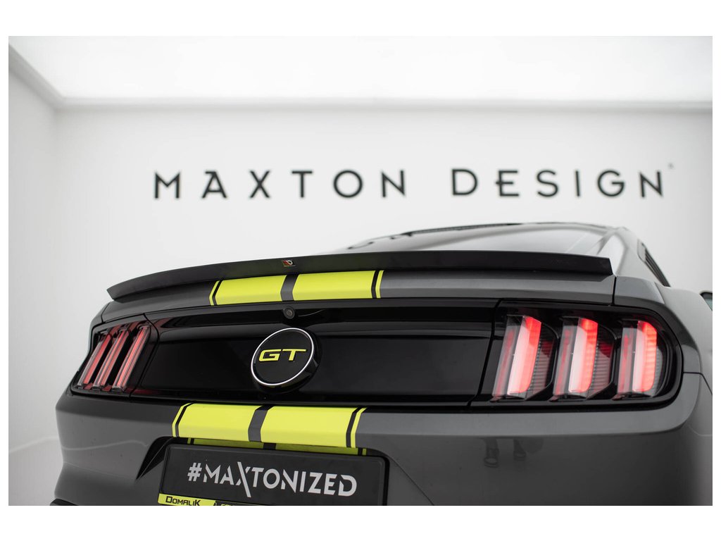 Maxton Design prodloužení spoileru pro vozidlo Ford Mustang Mk6 . Povrchová úprava spoileru černý lesklý plast ABS.