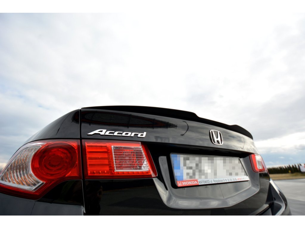 Maxton Design prodloužení spoileru pro vozidlo Honda Accord Mk8 . Povrchová úprava spoileru černý lesklý plast ABS.
