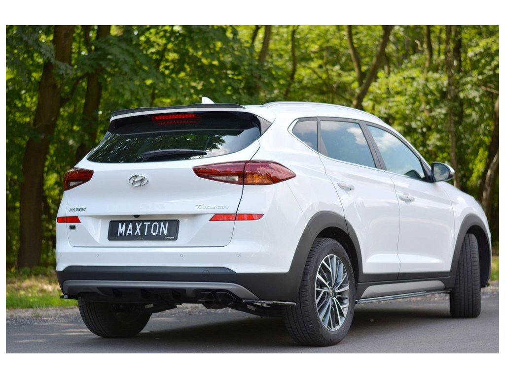 Maxton Design prodloužení spoileru pro vozidlo Hyundai Tucson Mk3 Facelift . Povrchová úprava spoileru černý lesklý plast ABS.