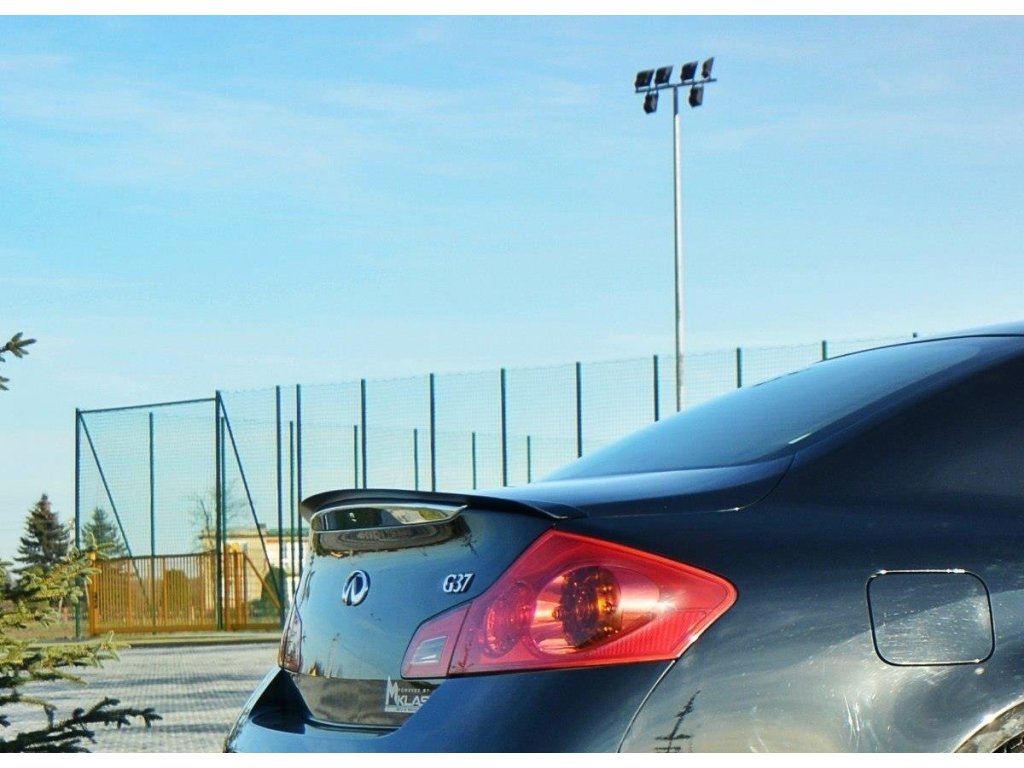 Maxton Design prodloužení spoileru pro vozidlo Infiniti G37 . Povrchová úprava spoileru carbon-Look.