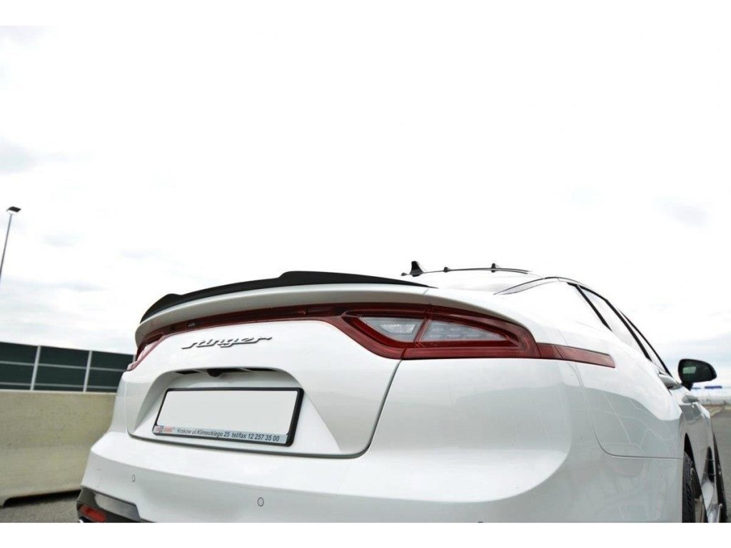 Maxton Design prodloužení spoileru pro vozidlo Kia Stinger GT . Povrchová úprava spoileru carbon-Look.