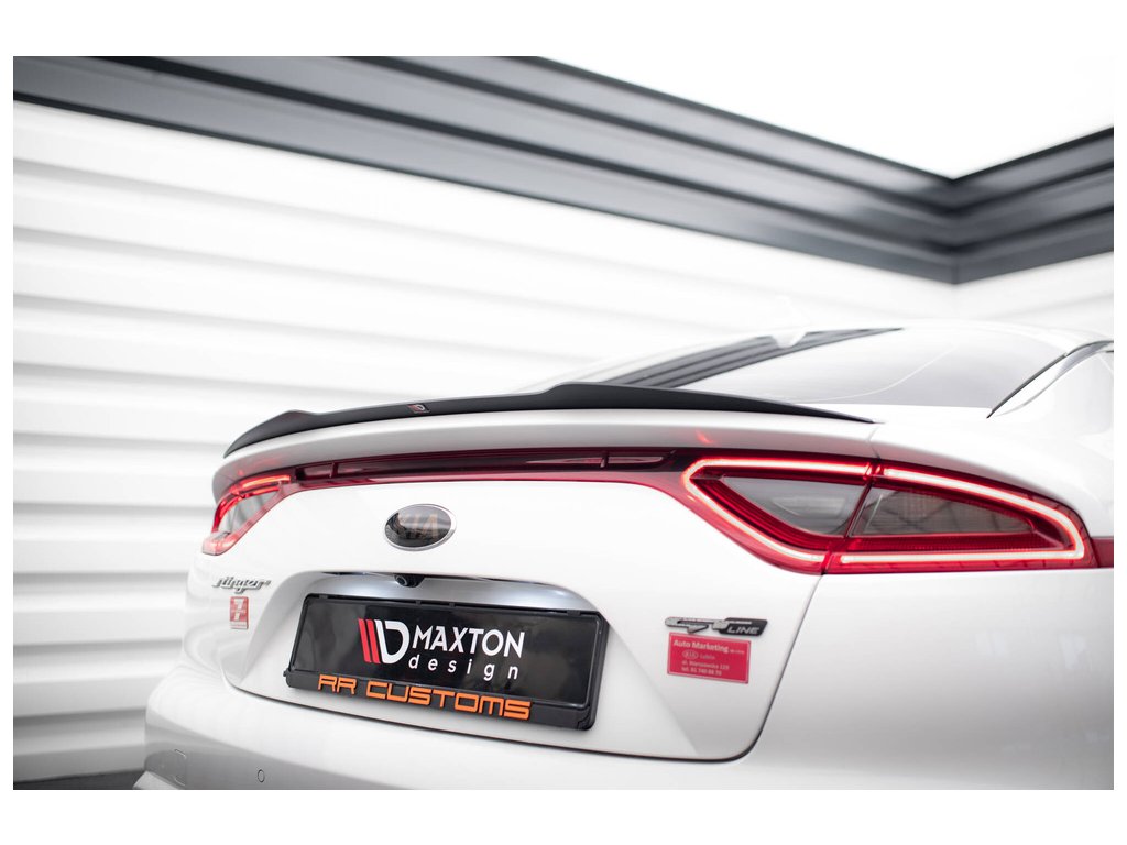 Maxton Design prodloužení spoileru pro vozidlo Kia Stinger GT . Povrchová úprava spoileru černý lesklý plast ABS.