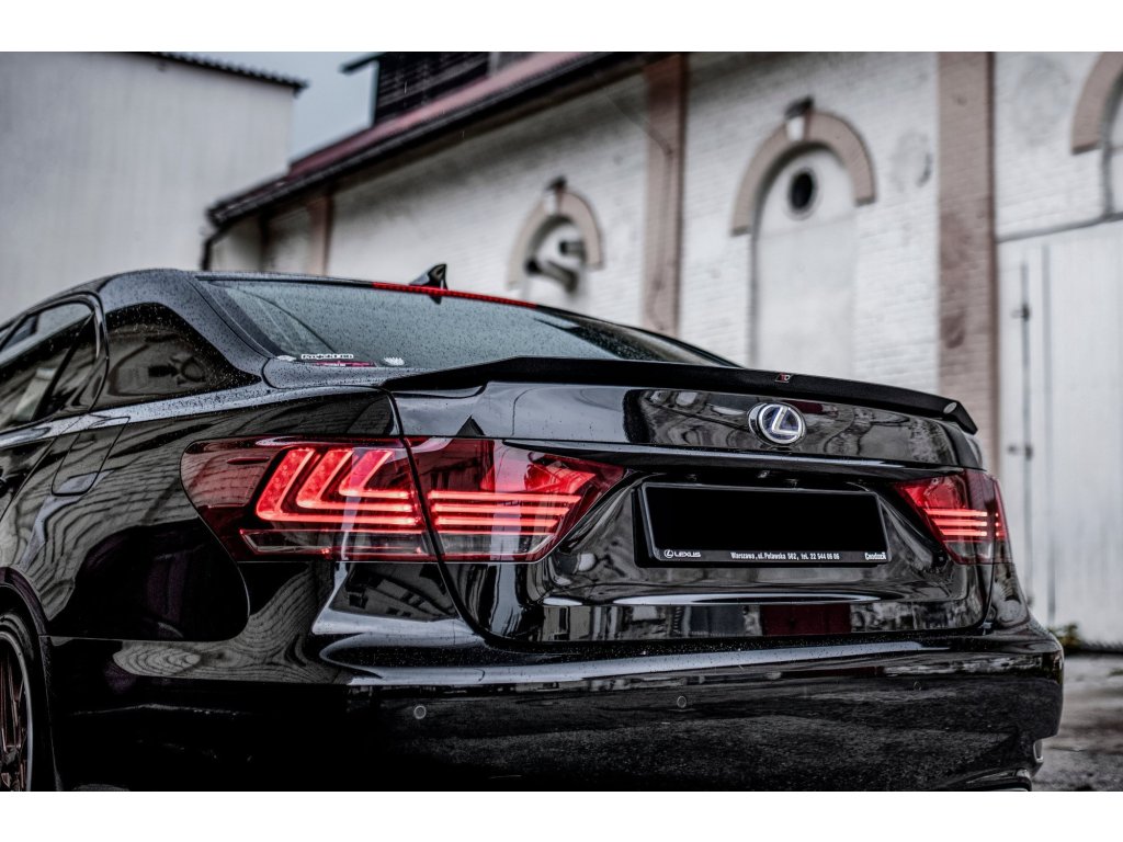 Maxton Design prodloužení spoileru pro vozidlo Lexus LS Mk4 . Povrchová úprava spoileru černý lesklý plast ABS.