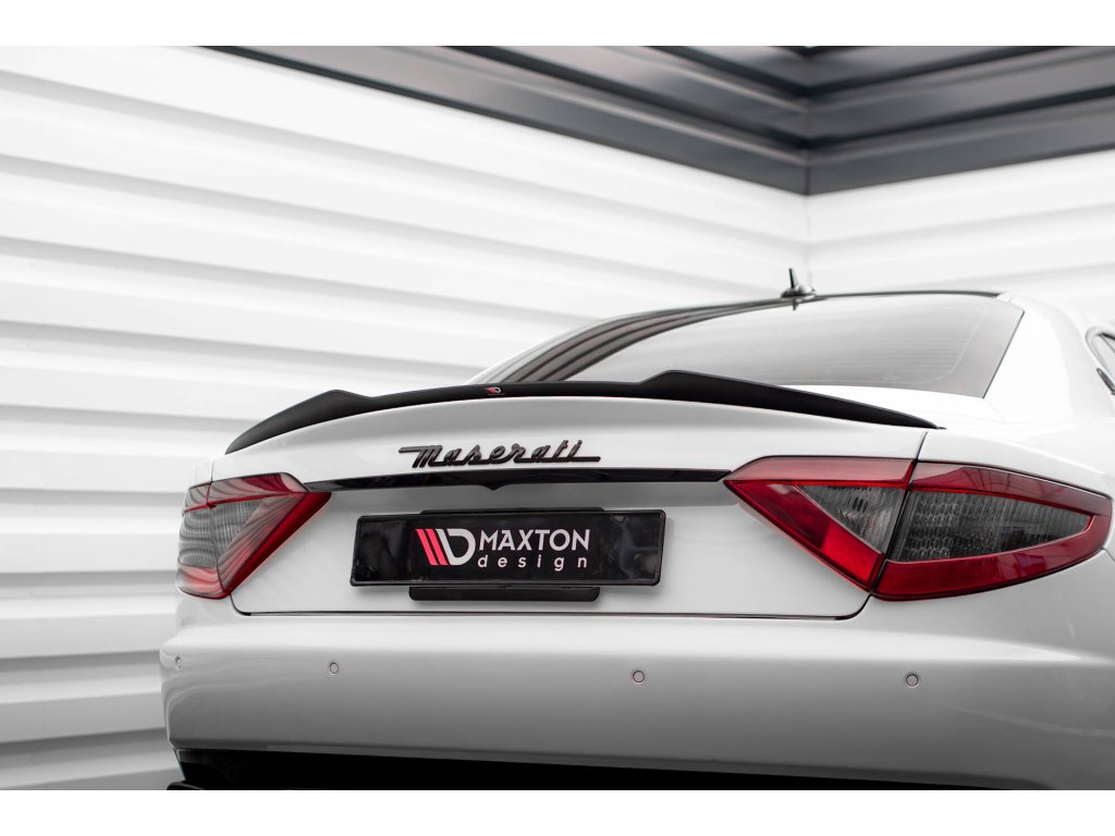 Maxton Design prodloužení spoileru pro vozidlo Maserati Granturismo S Mk1 . Povrchová úprava spoileru černý lesklý plast ABS.