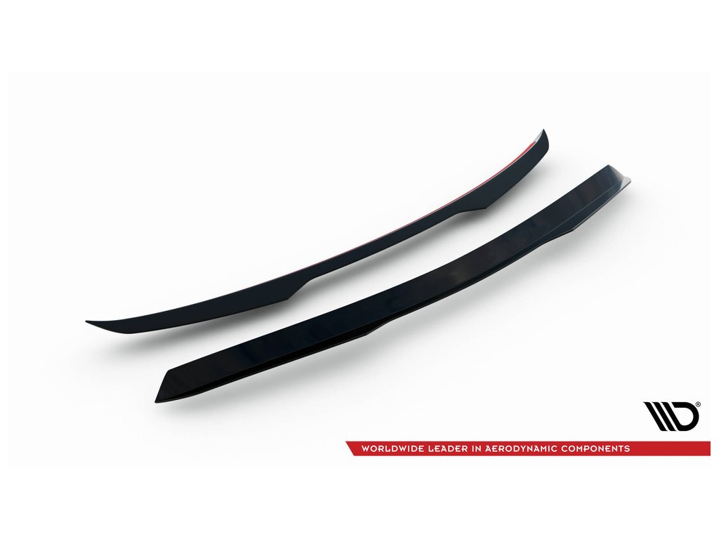 Maxton Design prodloužení spoileru pro vozidlo Mazda 3 Mk4 . Povrchová úprava spoileru černý lesklý plast ABS.