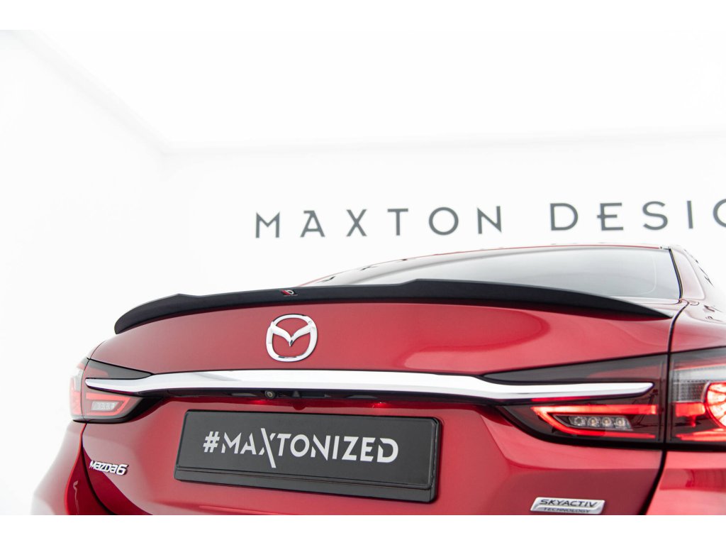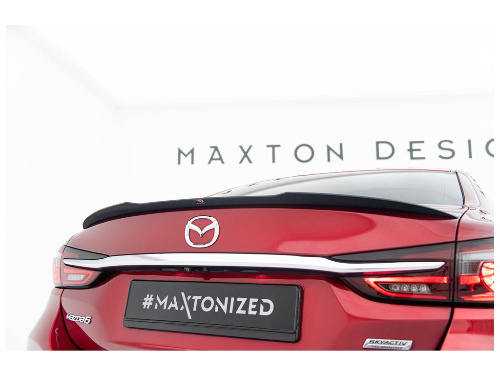 Maxton Design prodloužení spoileru pro vozidlo Mazda 6 Mk3 FL . Povrchová úprava spoileru černý lesklý plast ABS.