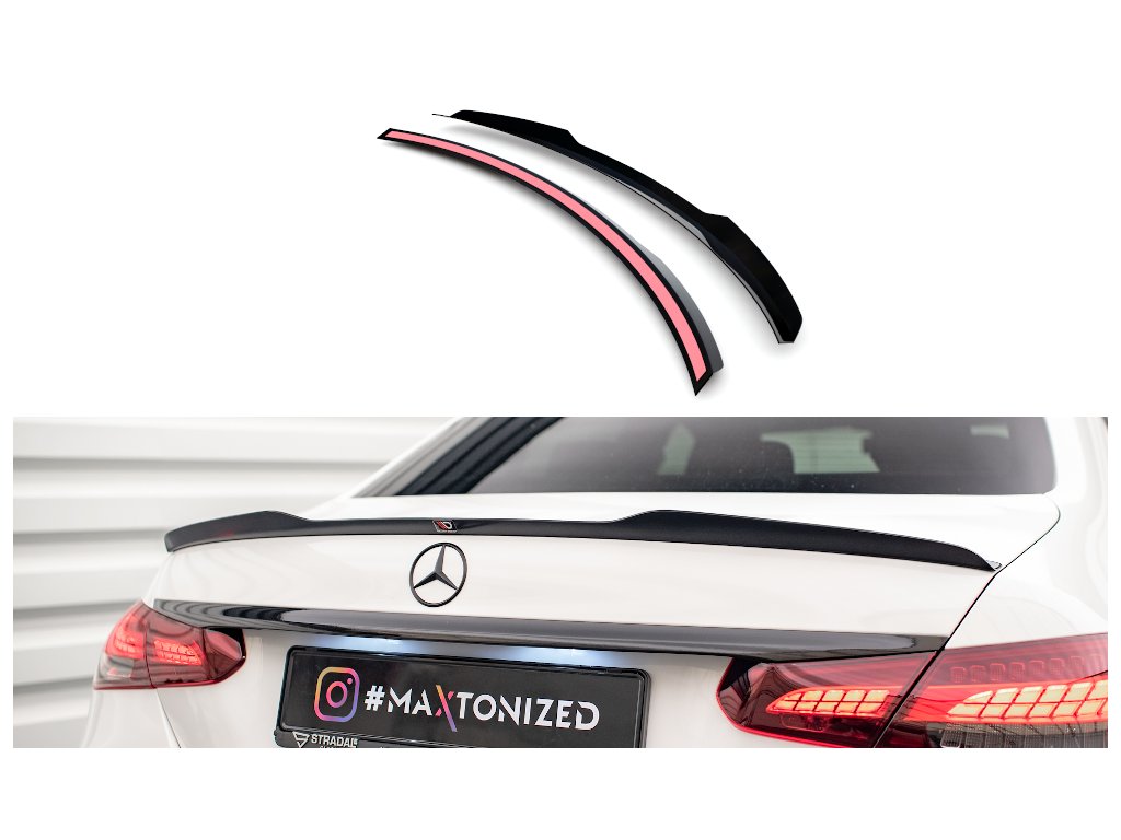 Maxton Design prodloužení spoileru pro vozidlo Mercedes třída E W213 FL/AMG-Line/Sedan . Povrchová úprava spoileru carbon-Look.