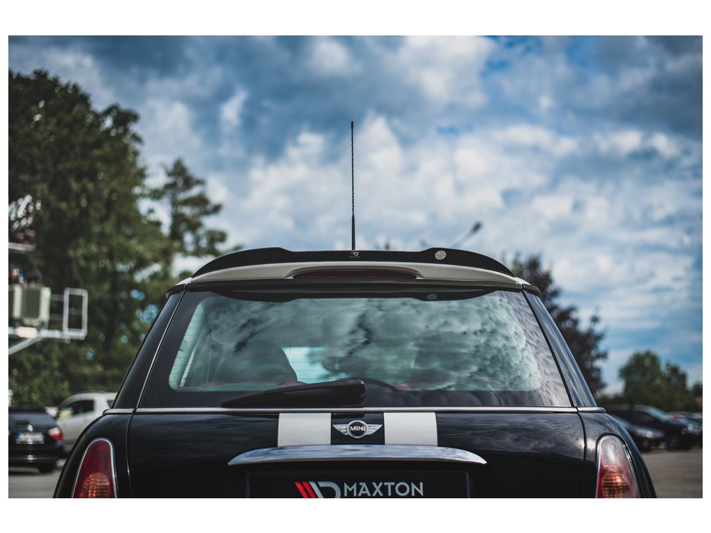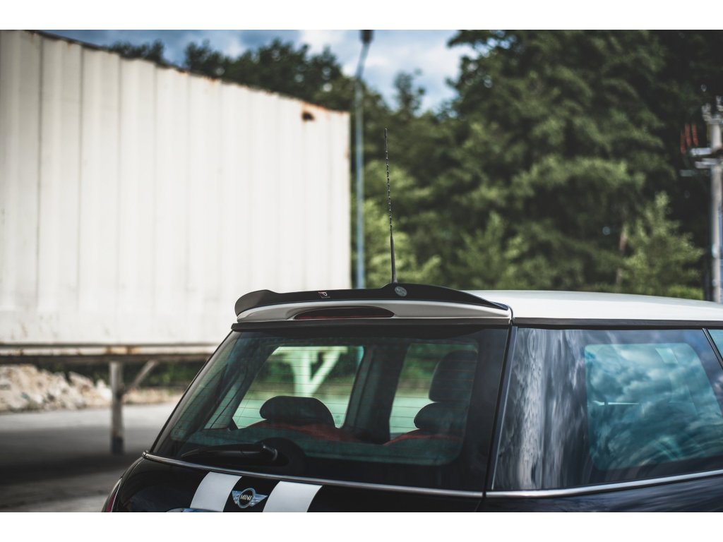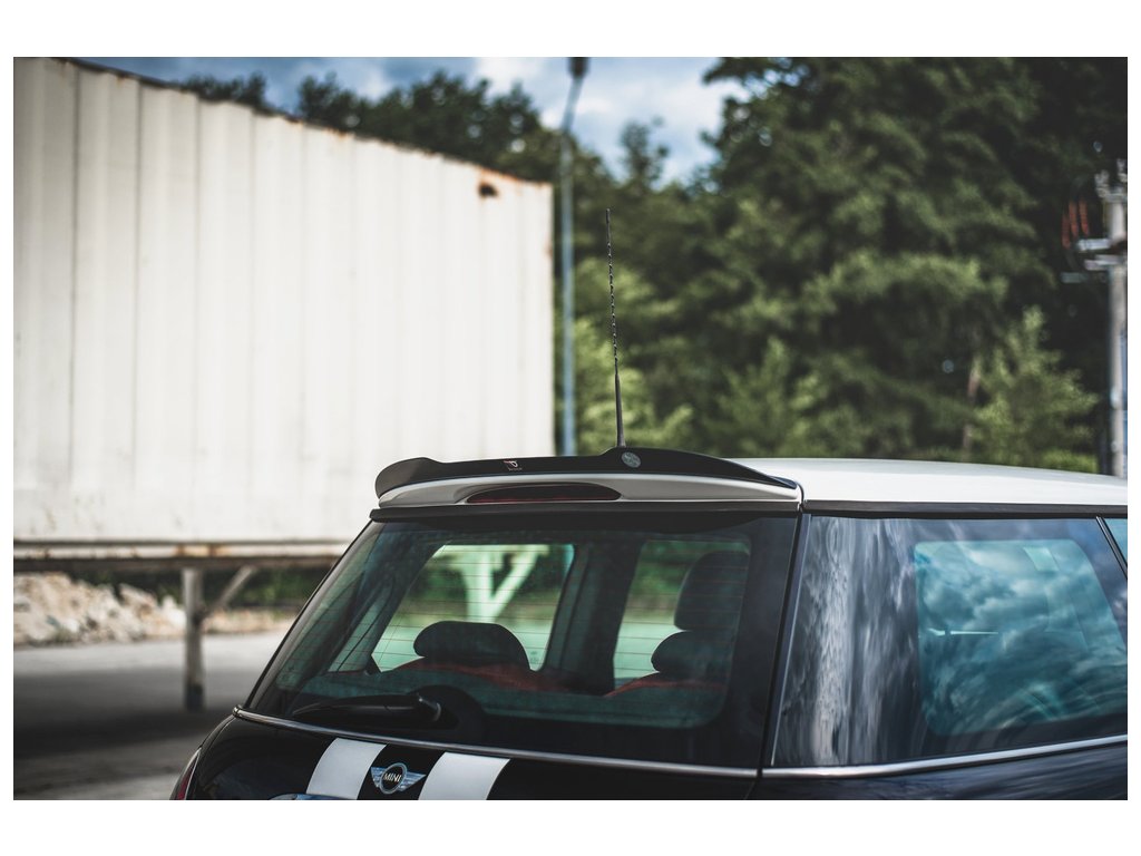 Maxton Design prodloužení spoileru pro vozidlo Mini Cooper R50 . Povrchová úprava spoileru černý lesklý plast ABS.