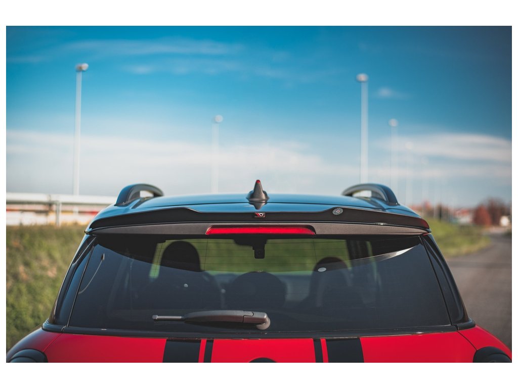 Maxton Design prodloužení spoileru pro vozidlo Mini Countryman F60 . Povrchová úprava spoileru černý lesklý plast ABS.