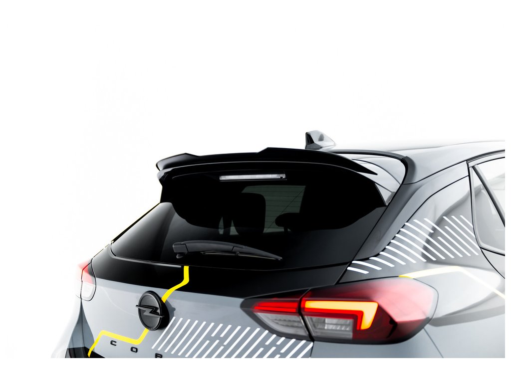 Spoiler Cap Opel Corsa F Facelift (Mk6 Facelift), povrchová úprava černý lesklý plast ABS.