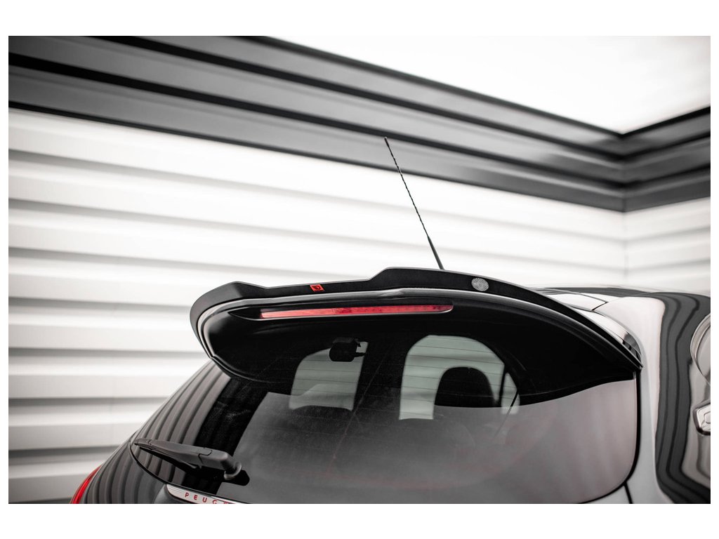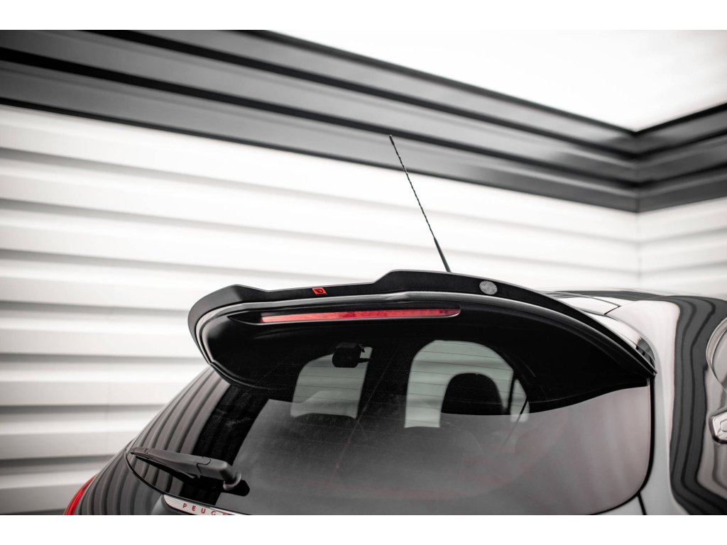 Maxton Design prodloužení spoileru pro vozidlo Peugeot 208 GTI Mk1 . Povrchová úprava spoileru černý lesklý plast ABS.