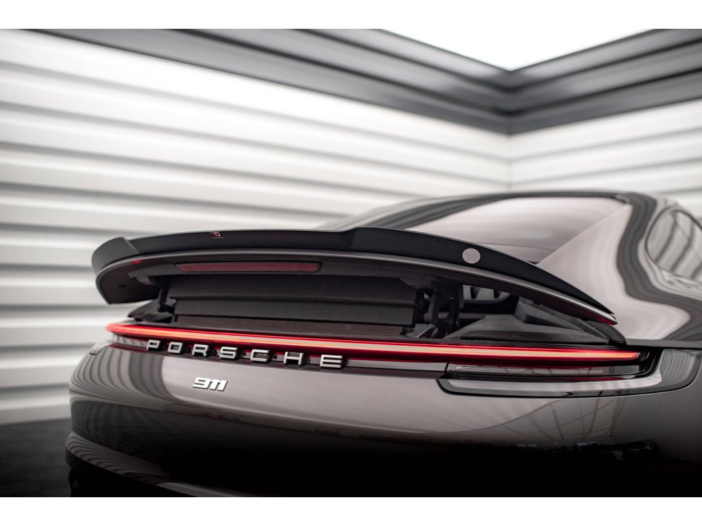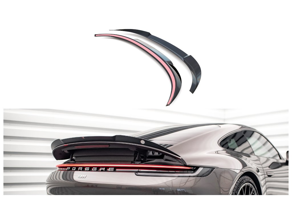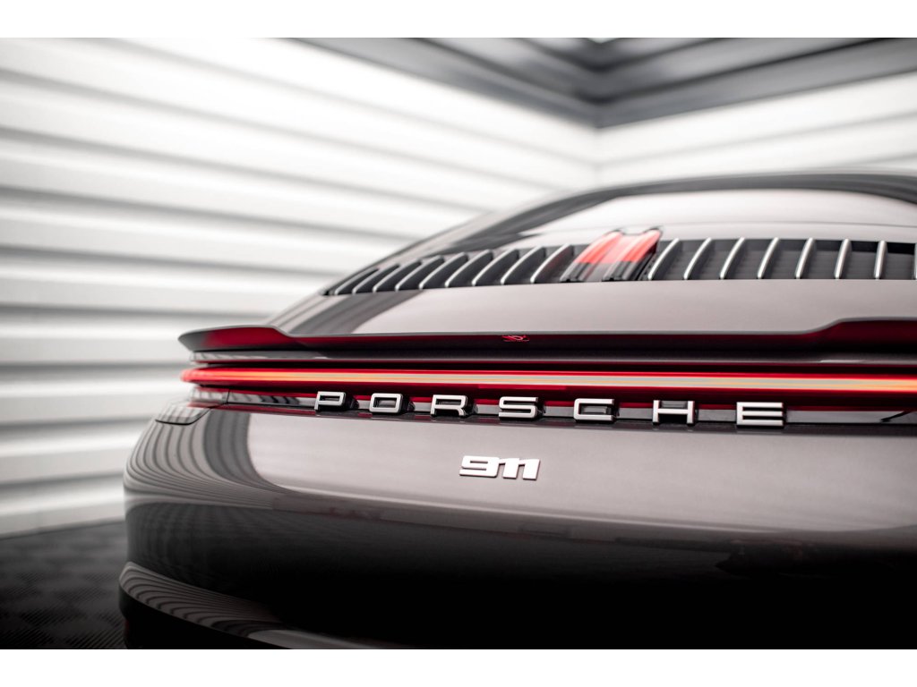 Maxton Design prodloužení spoileru pro vozidlo Porsche 911 992 /Carrera 4S . Povrchová úprava spoileru carbon-Look.