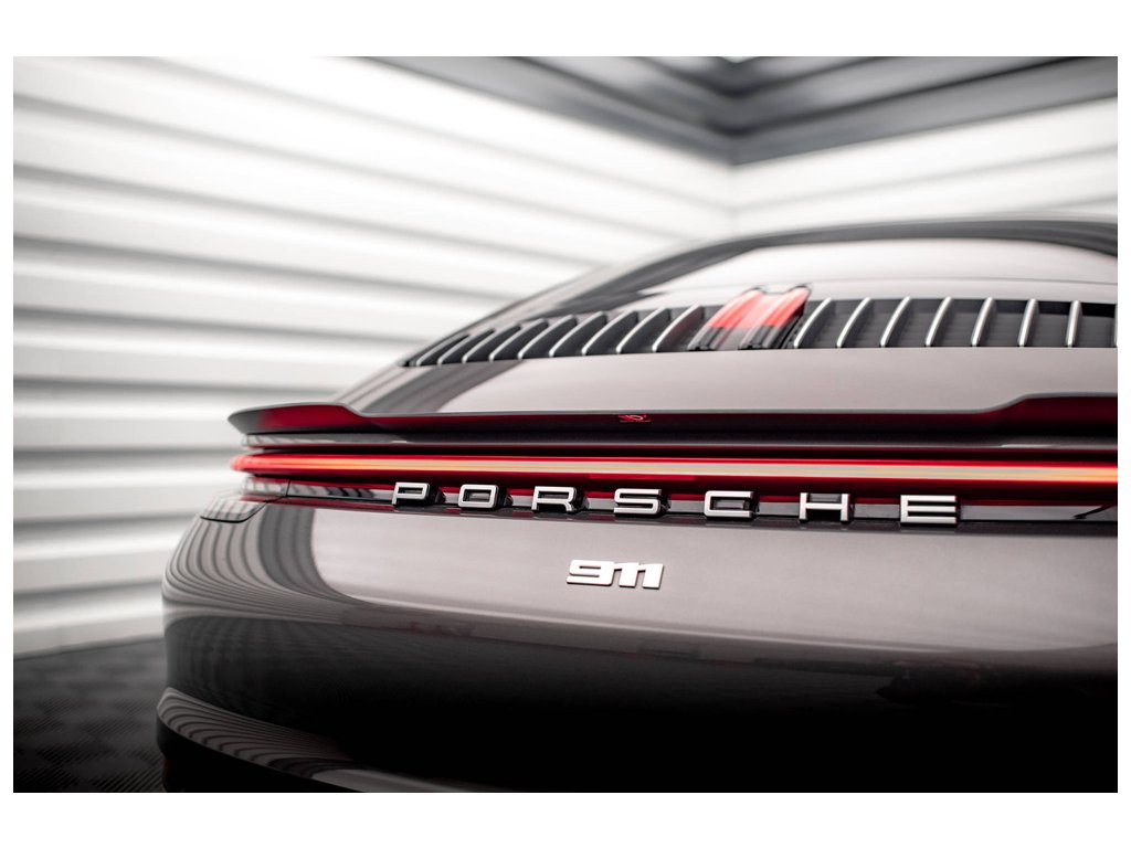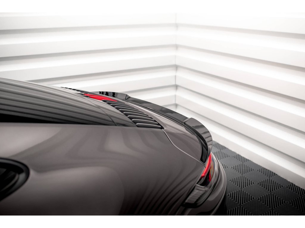 Maxton Design prodloužení spoileru pro vozidlo Porsche 911 992 /Carrera 4S . Povrchová úprava spoileru černý lesklý plast ABS.