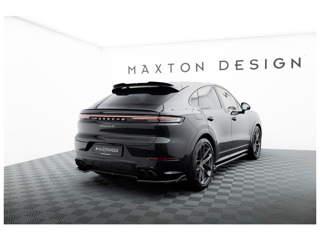 Maxton Design prodloužení spoileru pro vozidlo Porsche Cayenne Mk3 Coupe . Povrchová úprava spoileru černý lesklý plast ABS.