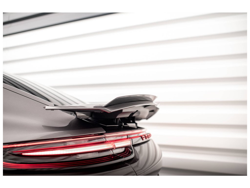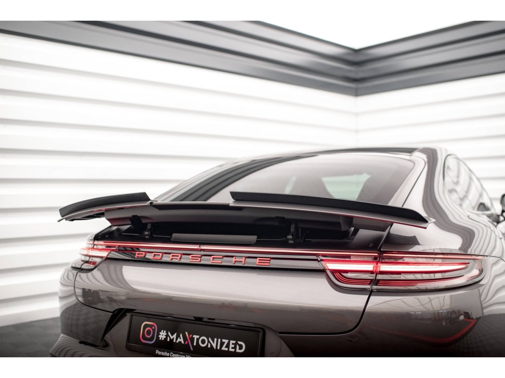 Maxton Design prodloužení spoileru pro vozidlo Porsche Panamera 971 . Povrchová úprava spoileru černý lesklý plast ABS.