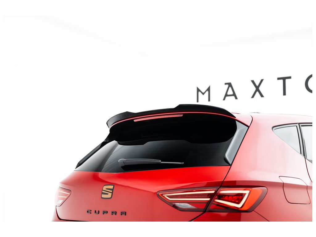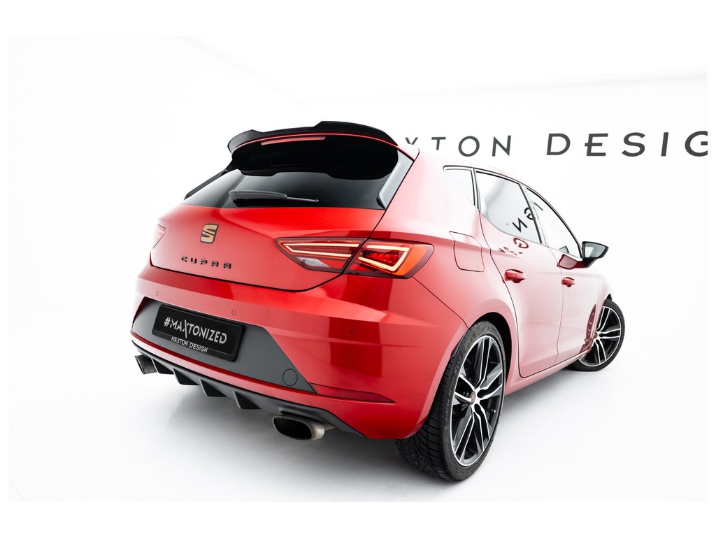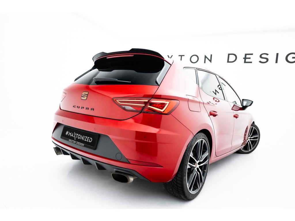 Maxton Design prodloužení spoileru pro vozidlo Seat Leon Cupra Mk3 . Povrchová úprava spoileru černý lesklý plast ABS.
