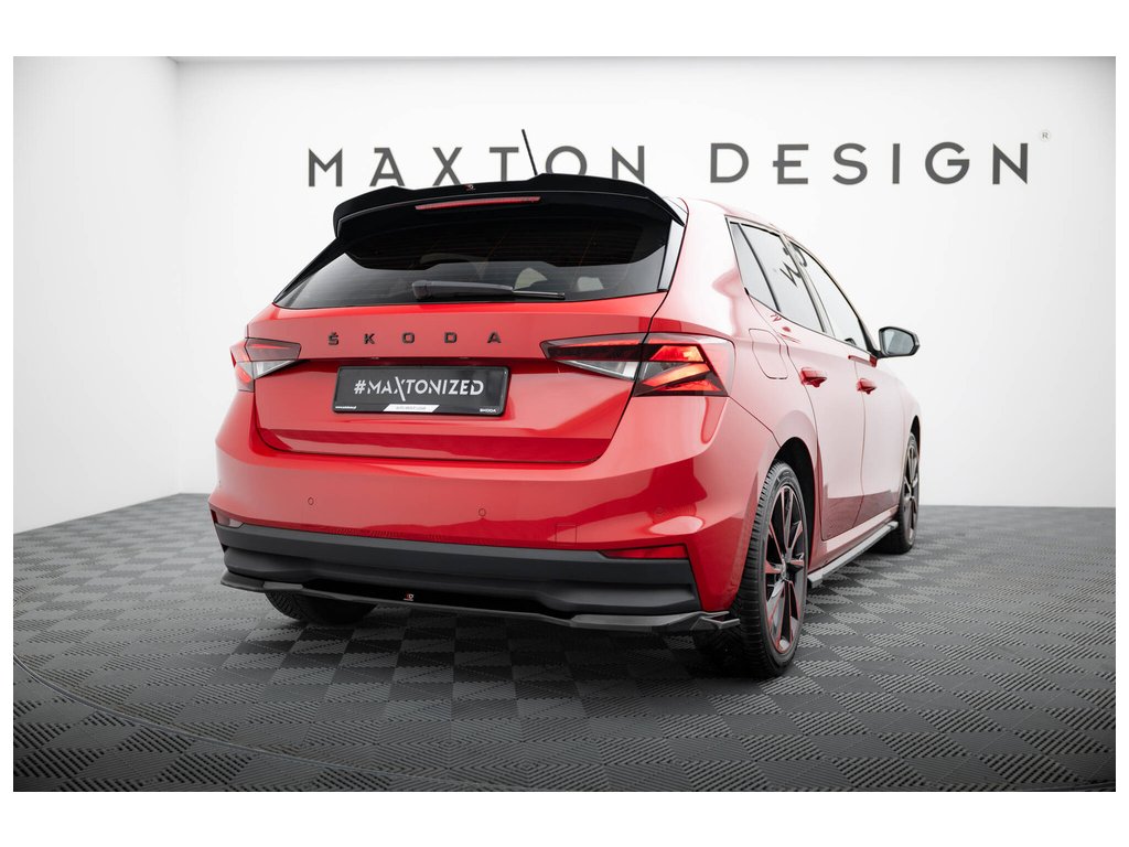 Maxton Design prodloužení spoileru pro vozidlo Škoda Fabia Mk4 . Povrchová úprava spoileru černý lesklý plast ABS.