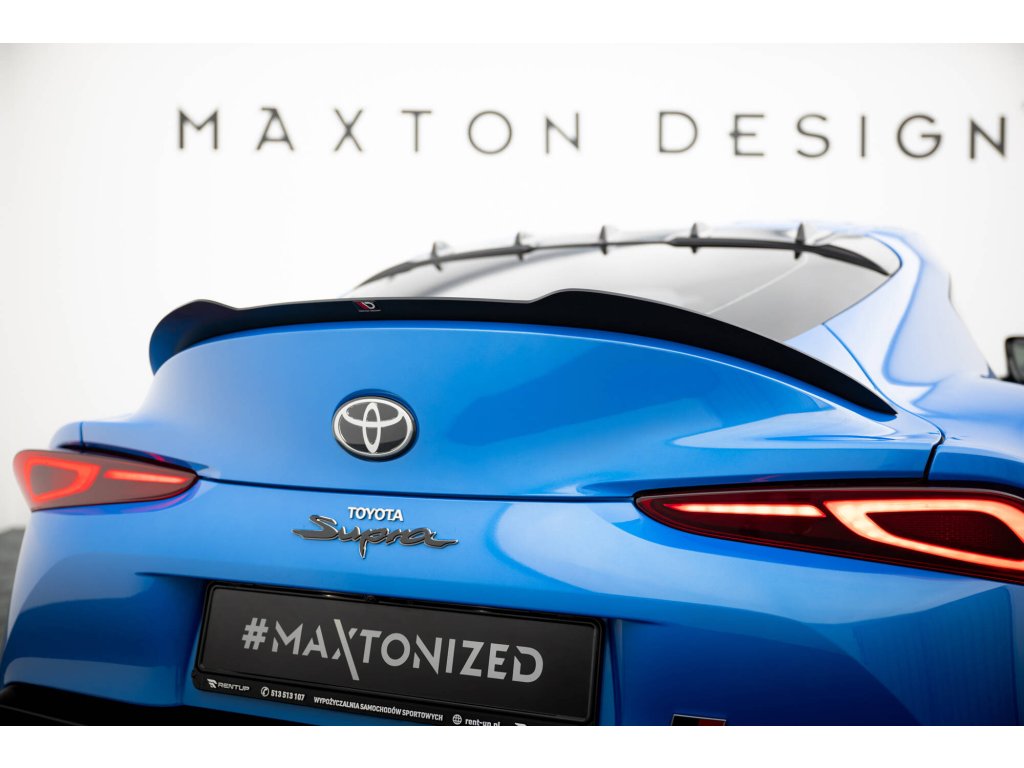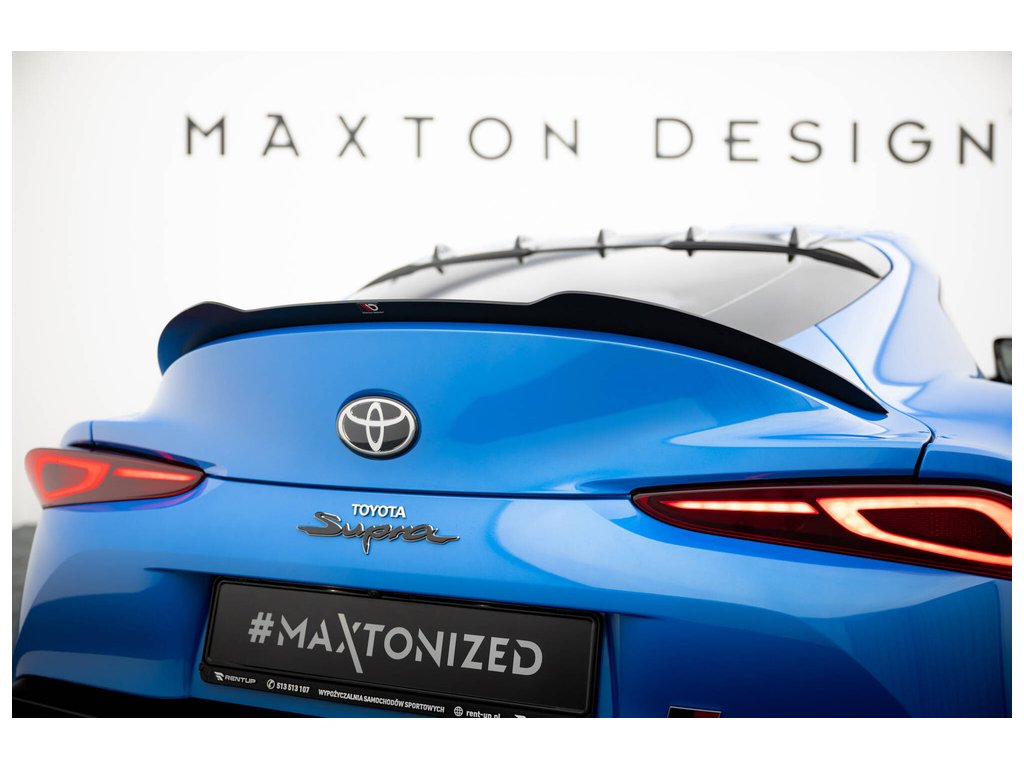 Maxton Design prodloužení spoileru pro vozidlo Toyota Supra Mk5 . Povrchová úprava spoileru černý lesklý plast ABS.