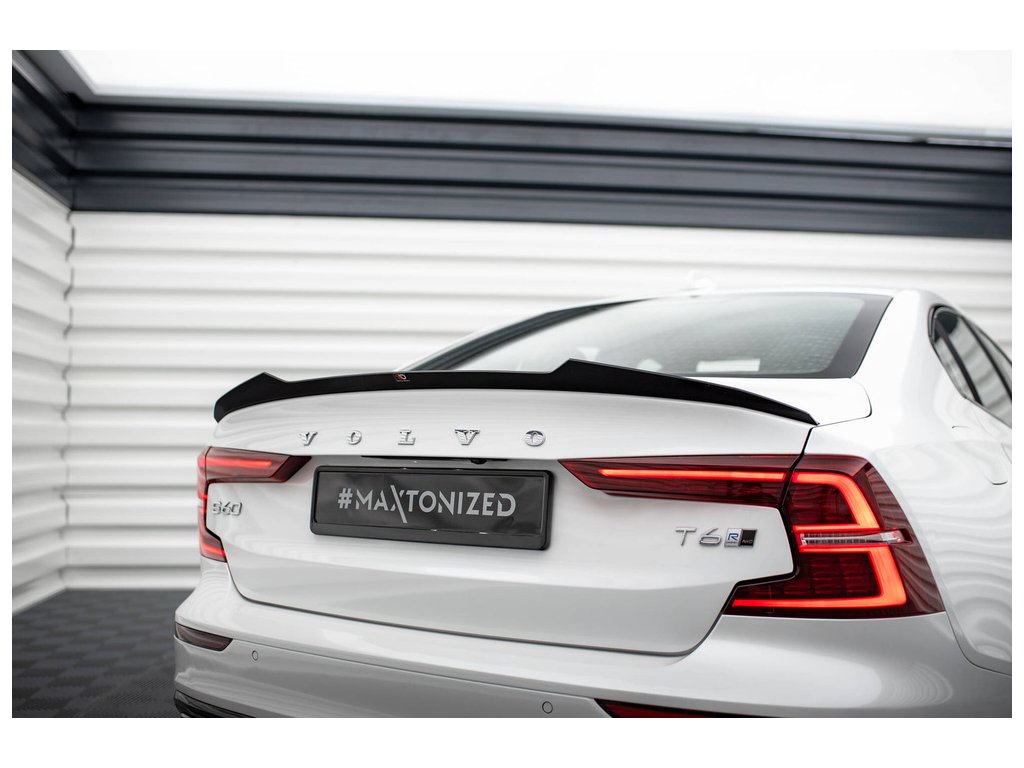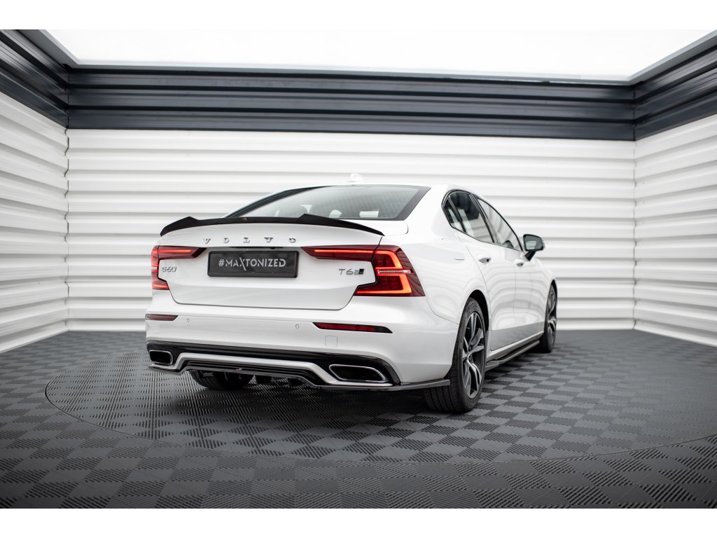 Maxton Design prodloužení spoileru pro vozidlo Volvo S60 Mk3 . Povrchová úprava spoileru černý lesklý plast ABS.