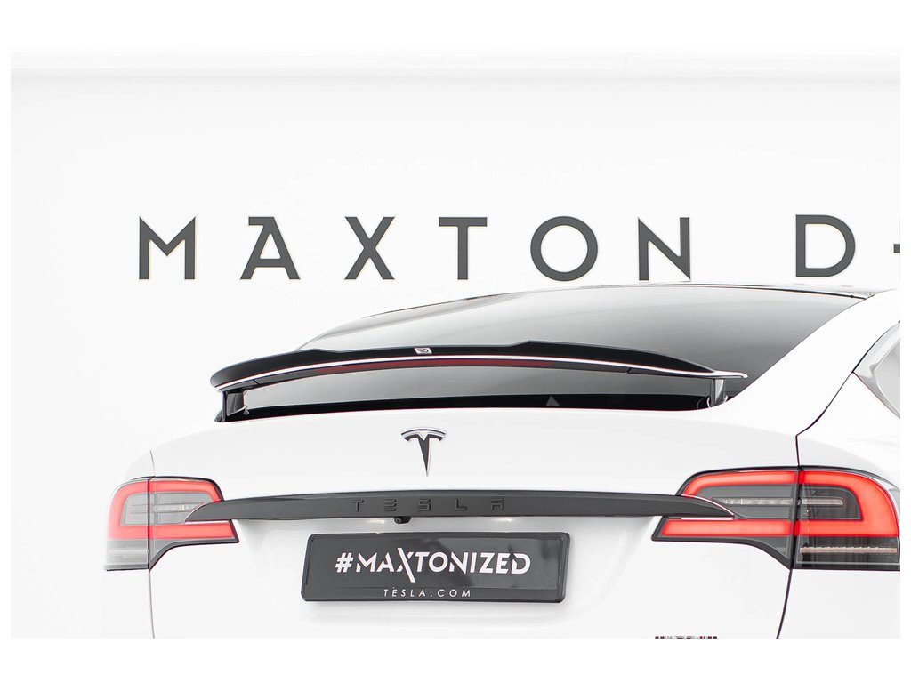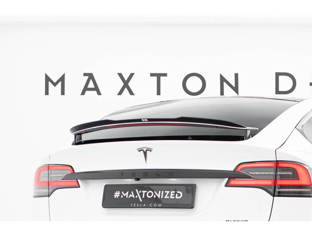 Maxton Design prodloužení spoileru ver.1 pro vozidlo Tesla Model X Mk1 . Povrchová úprava spoileru černý lesklý plast ABS.