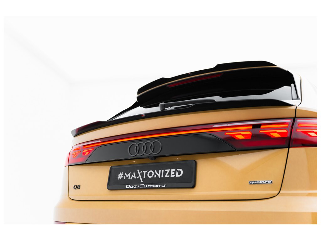 Maxton Design prodloužení spoileru ver.2 pro vozidlo Audi Q8 Mk 1 . Povrchová úprava spoileru černý lesklý plast ABS.