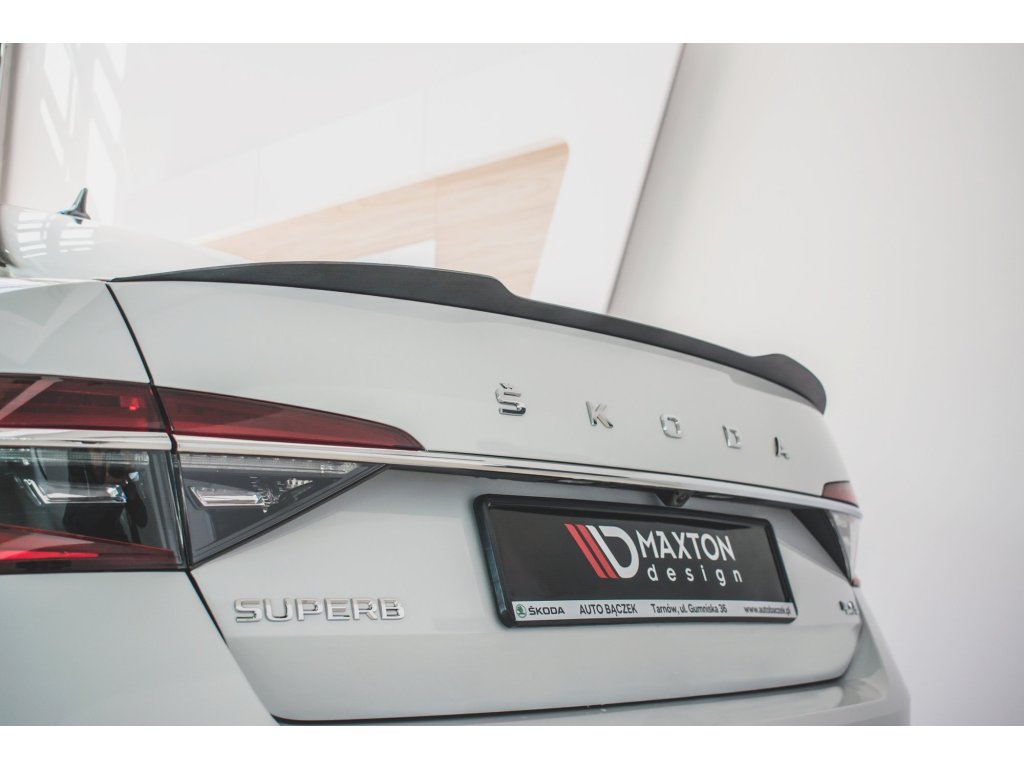 Maxton Design prodloužení spoileru ver.2 pro vozidlo Škoda Superb Mk3 FL . Povrchová úprava spoileru carbon-Look.