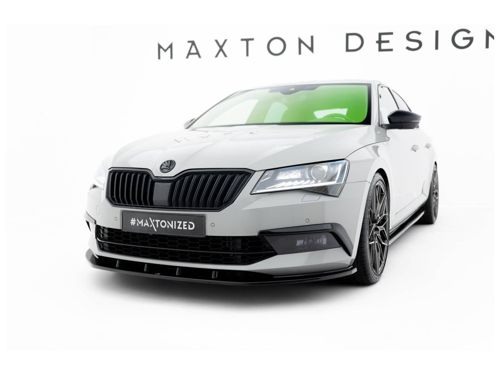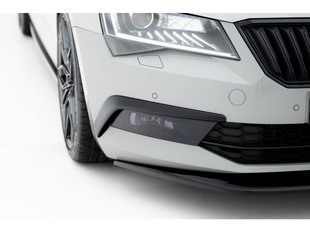 Maxton Design rámečky předního nárazníku pro vozidlo Škoda Superb Mk3 . Povrchová úprava spoileru černý lesklý plast ABS.