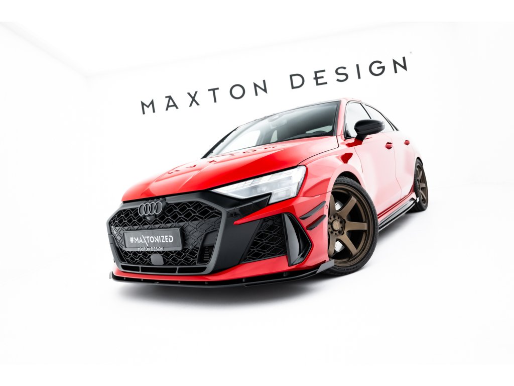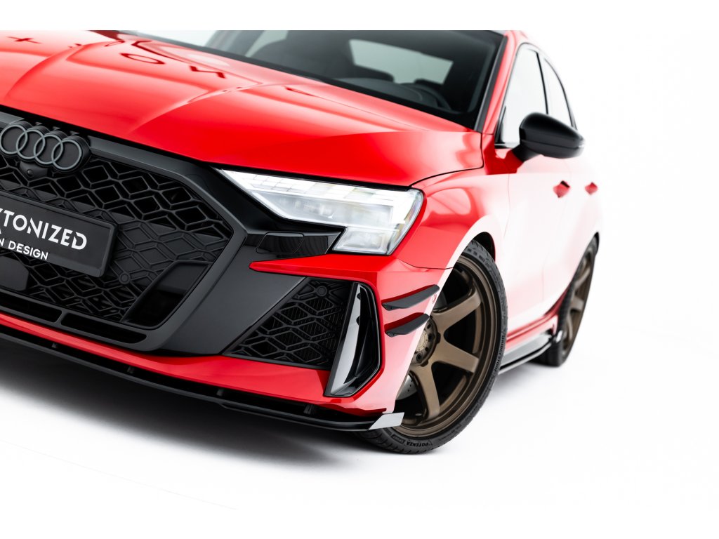 Maxton Design rohové spoilery pod přední nárazník pro vozidlo Audi RS3 8Y Facelift . Povrchová úprava spoileru plast ABS bez povrchové úpravy.
