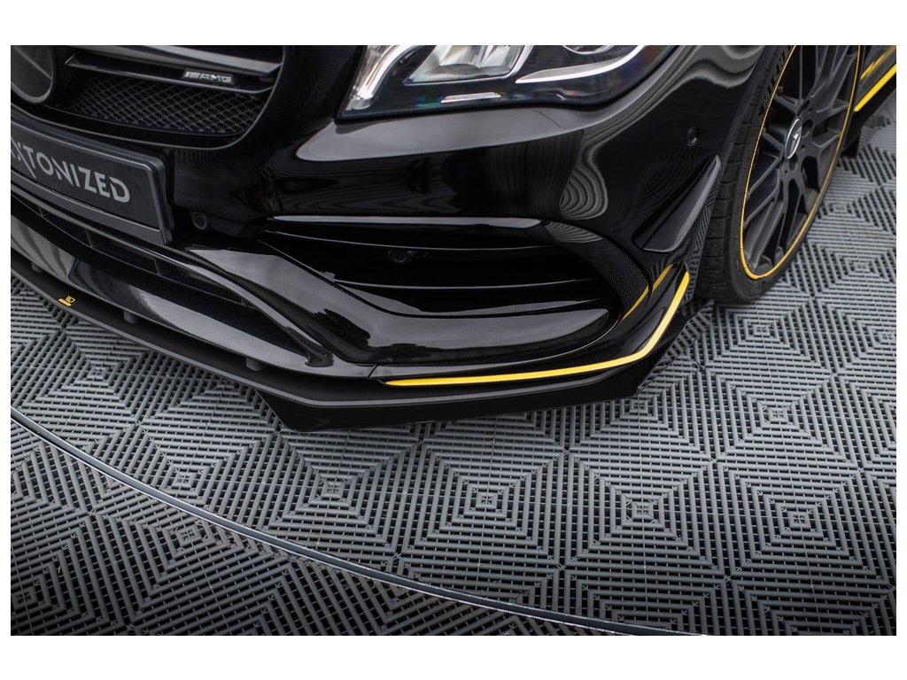 Maxton Design rohové spoilery pod přední nárazník pro vozidlo Mercedes CLA C 117 Facelift 45 Aero . Povrchová úprava spoileru plast ABS bez povrchové úpravy.