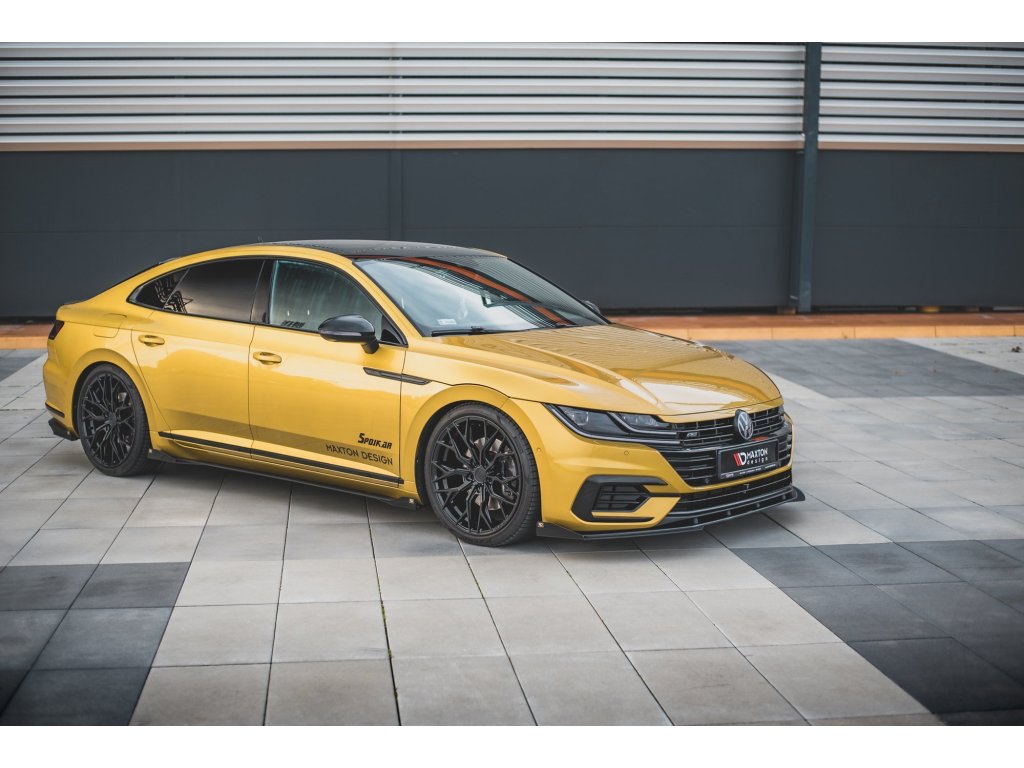 Maxton Design rohové spoilery pod přední nárazník pro vozidlo Volkswagen Arteon R-Line 2017-2020 . Povrchová úprava spoileru černý lesklý plast ABS.