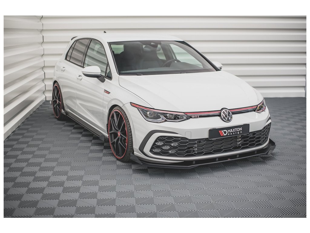 Maxton Design rohové spoilery pod přední nárazník pro vozidlo Volkswagen Golf GTI Mk8 . Povrchová úprava spoileru černý lesklý plast ABS.