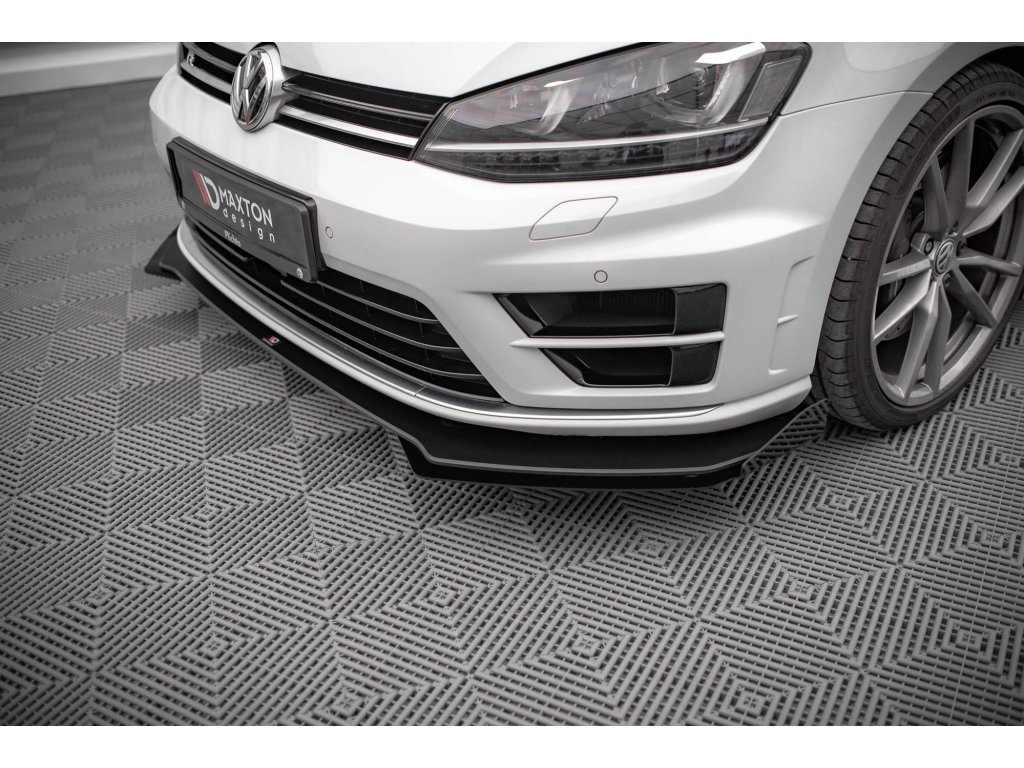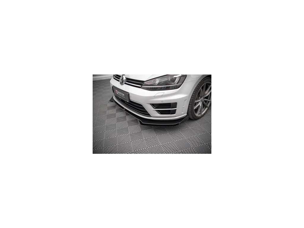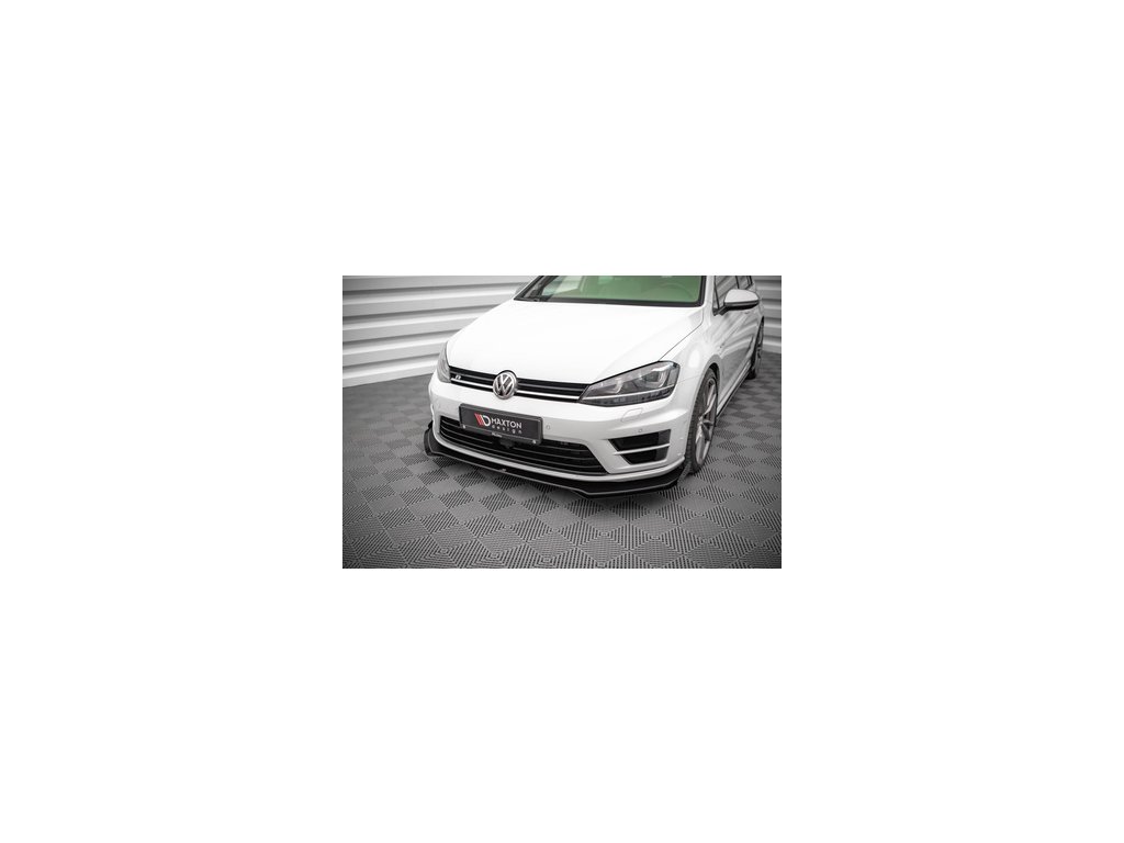 Maxton Design rohové spoilery pod přední nárazník pro vozidlo Volkswagen Golf R Mk7 . Povrchová úprava spoileru černý lesklý plast ABS.