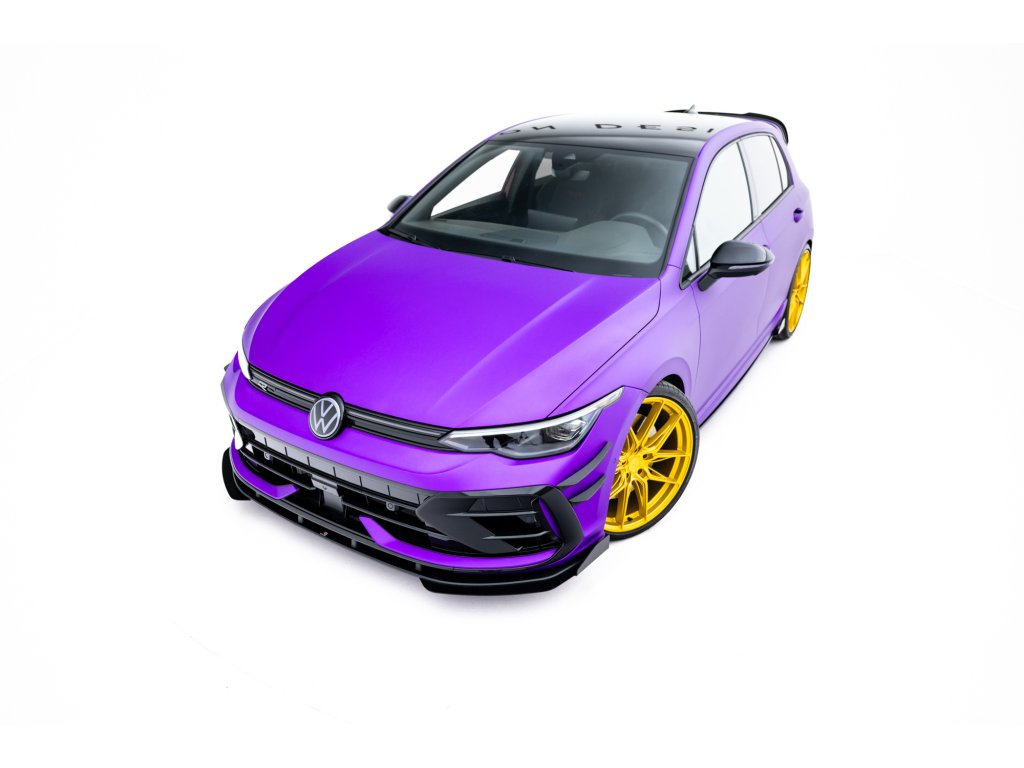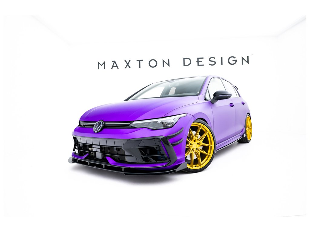 Maxton Design rohové spoilery pod přední nárazník pro vozidlo Volkswagen Golf R Mk8 Facelift . Povrchová úprava spoileru plast ABS bez povrchové úpravy.