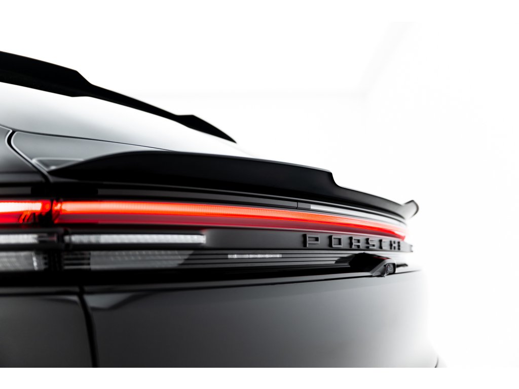 Maxton Design spodní prodloužení víka kufru pro vozidlo Porsche Macan EV Mk1 . Povrchová úprava spoileru černý lesklý plast ABS.