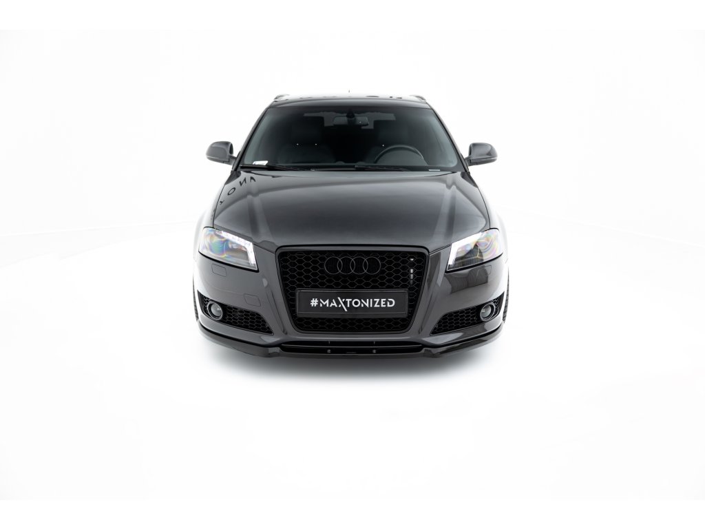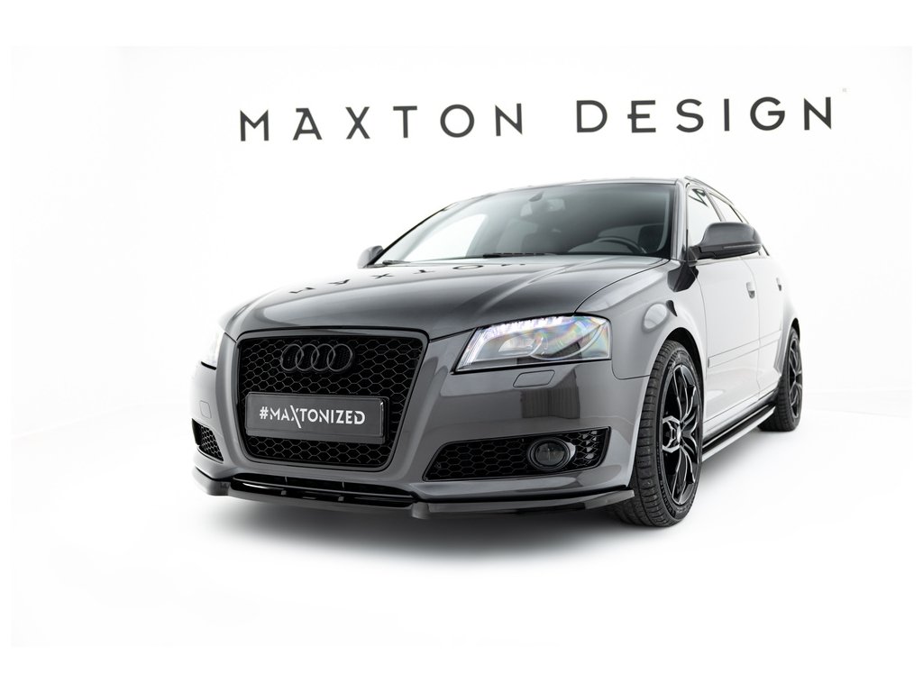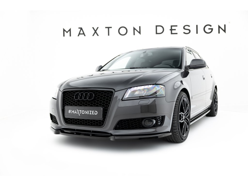Maxton Design spoiler pod přední nárazník pro vozidlo Audi A3 8P . Povrchová úprava spoileru černý lesklý plast ABS.