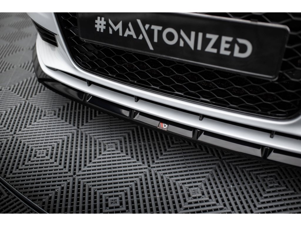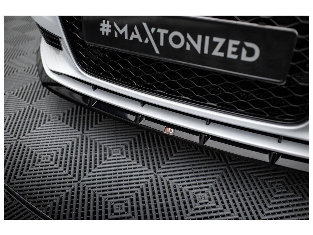 Maxton Design spoiler pod přední nárazník pro vozidlo Audi A3 8V . Povrchová úprava spoileru černý lesklý plast ABS.