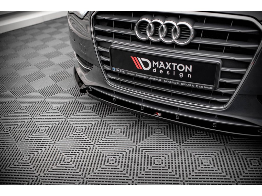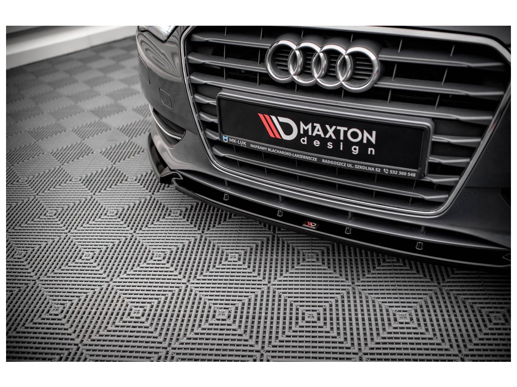 Maxton Design spoiler pod přední nárazník pro vozidlo Audi A3 8V . Povrchová úprava spoileru černý lesklý plast ABS.